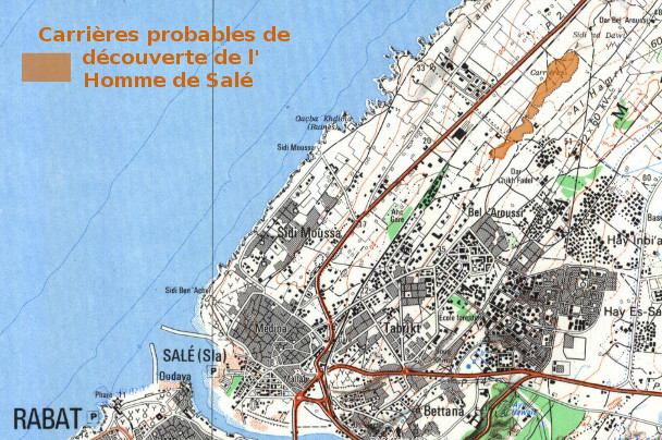 L'Homme de Salé En 1971, un crâne fossile partiel a été découvert dans une carrière de grès à quelques kilomètres de Salé. Ce crâne est attribué au genre Homo. Age 400 000 ans selon la faune associée